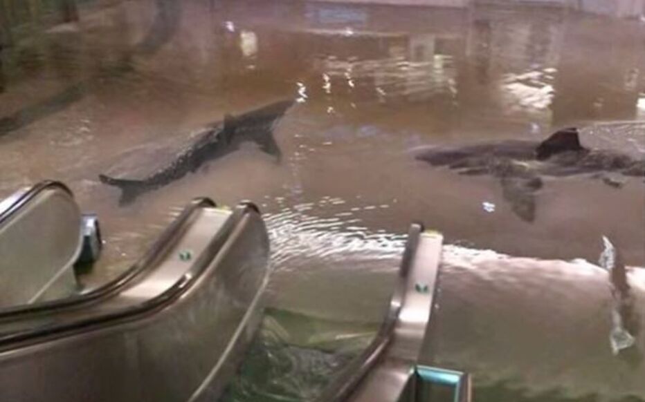 Photo 1 : Vrai ou faux ?Un aquarium à requins se brise dans un centre commercial |