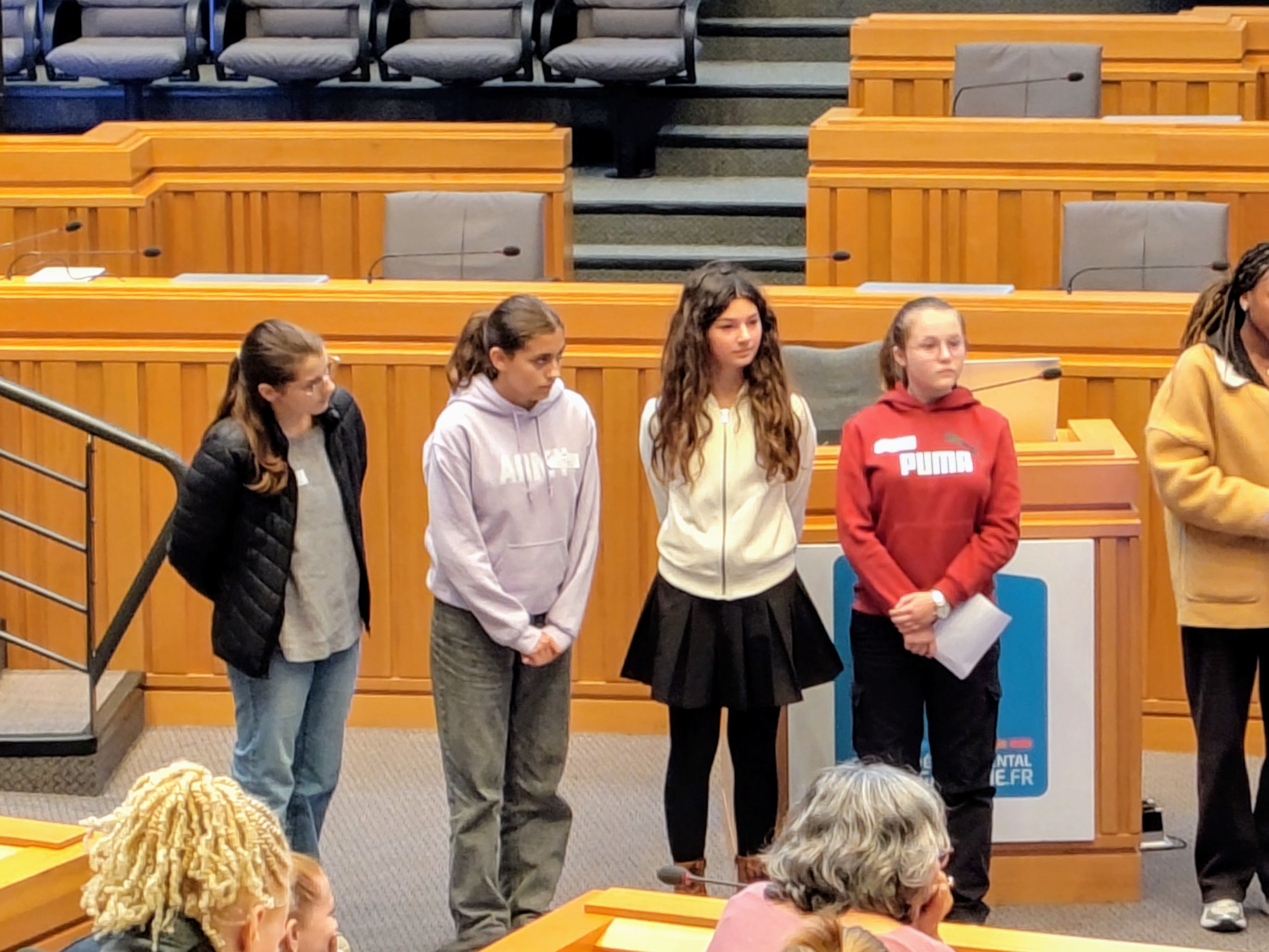 Nos élèves ont su se montrer respectueux, attentifs et très participatifs tout au long des deux journées, notamment durant les ateliers proposés et les restitutions communes, en particulier dans l’hémicycle du Conseil Départemental.